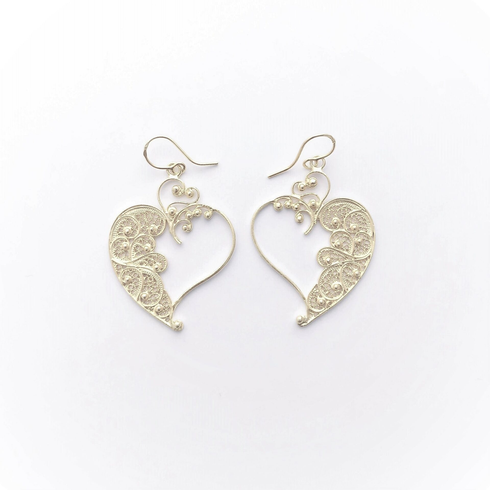 Produto artesanal em filigrana portuguesa com pequenos pormenores que integram o modelo Coração D’ouro de tamanho médio.